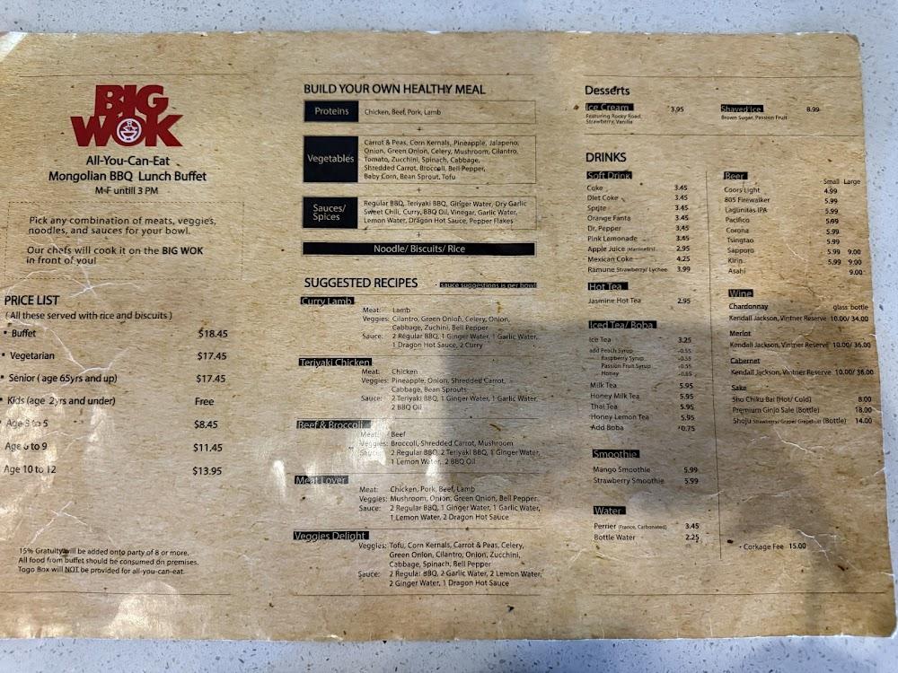 Welcome to BIG WOK Mongolian Bar-B-Q, your ultimate destination for all-you-can-eat Mongolian BBQ near Foothill Ranch! Located at 26771 Rancho Pkwy, Lake Forest, CA, we pride ourselves on offering a delicious buffet-style dining experience where you can create your perfect bowl from our fresh ingredients. Enjoy a quick lunch or a relaxed dinner in our wheelchair-accessible space, ideal for families and groups. With quick service, a welcoming atmosphere, and a variety of beverages including healthy options, we cater to every palate. Join us for a unique culinary experience that celebrates traditional Mongolian flavors!