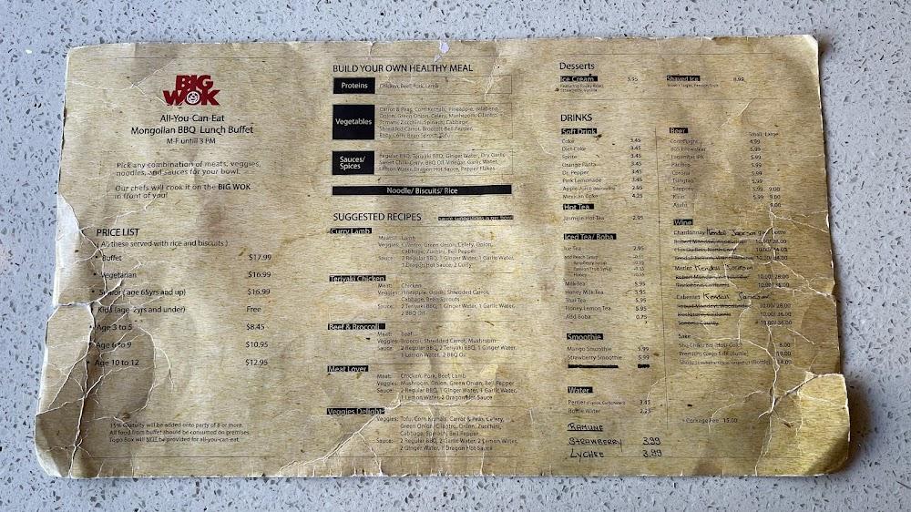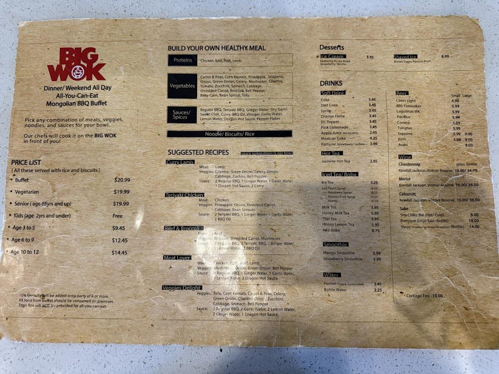 BIG WOK features an impressive menu centered around Mongolian BBQ. Diners can customize bowls with a selection of meats, vegetables, and sauces. The stir-fry technique highlights each ingredient's flavor. Specialties like egg drop soup and sesame bread accompany meals, adding depth. The bar features an assortment of drinks, blending nicely with the meal. Guests rave about the creative sauce mixes, ensuring every visit feels unique.
